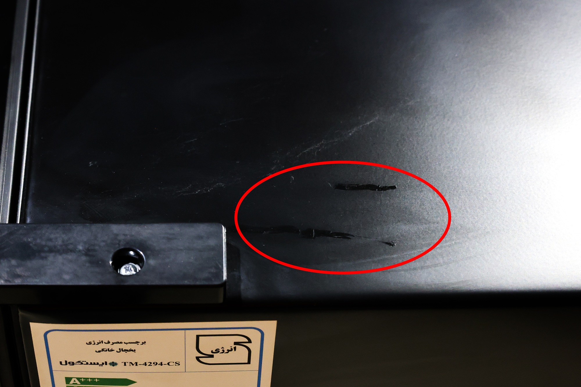البته در برخی موارد ممکن است ایراد ظاهری در قسمت جلوی محصول قرار داشته باشد و قابل مشاهده باشد؛ مانند آبسردکنی که تصویر آن را مشاهده میکنید. با این حال، محل قرارگیری ایراد کاملاً تصادفی است و بهنوعی به شانس مشتری بستگی دارد.